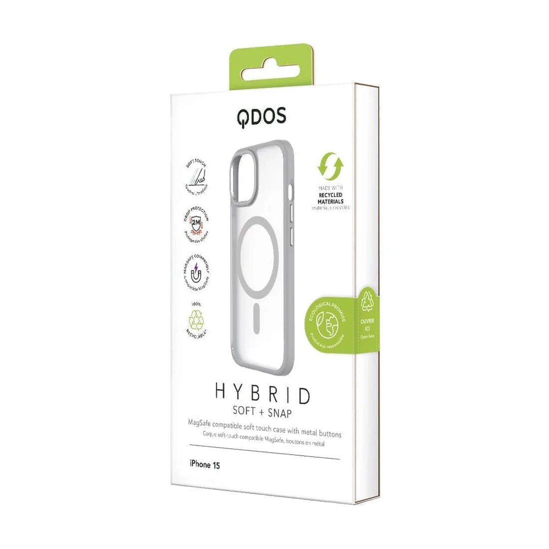 QDOS iPhone 15, 15 Pro White Grey Clear Case with MagSafe Hybrid Soft with Snap